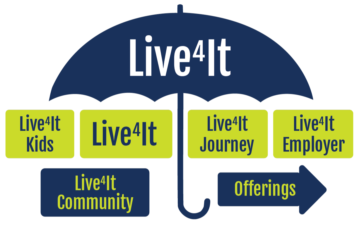 Today, Live4It.com serves as the central gateway—connecting individuals and organizations to both initiatives, as well as to wellness tools, and app/portal, branded merchandise, and engaging presentations.